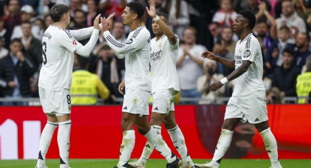 Y ocho minutos más tarde, un error de Flavien Boyomo en la salida de balón sirvió en bandeja el 4-0 del Real Madrid, con Brahim Díaz como asistente para un Vinícius que remató a placer para firmar su segundo triplete del curso.