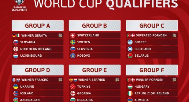 Habrá 6 grupos de 5 equipos y 6 grupos de 4, iniciando en marzo las eliminatorias (partidos de ida y vueta), a la par de los cuartos de final de la Nations League.