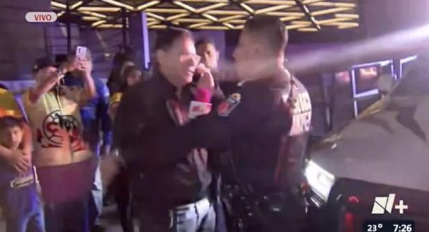 La situación se dio tras la llegada del autobús del equipo de Coapa, cuando los policías comenzaron a sonar sus sirenas para dispersar a los presentes y despejar la calle. Durante la movilización, el periodista Ernesto Herrera, quién se encontraba haciendo un enlace en vivo, y su camarógrafo, Josué Martínez, fueron agredidos por los elementos, intentando prensar al camarógrafo, quien al término del enlace mencionó molestias en el tobillo y la rodilla tras el incidente.