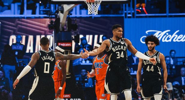 Ante la mirada de leyendas del deporte como el exnadador Michael Phelps o los exjugadores de la NBA: Ray Allen y Oscar Robertson, los Bucks superaron por completo a los Thunder, en una noche en la que Damian Lillard aportó 23 puntos (5 triples), cuatro rebotes, cuatro asistencias.