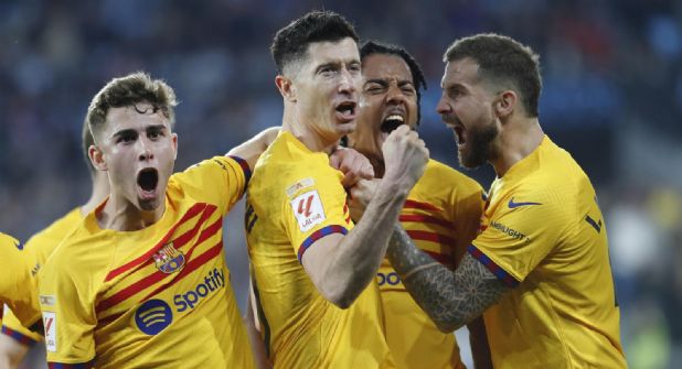 Fue entonces, con el crono próximo al final del primer tiempo, cuando apareció el único chispazo brillante, el ingenio de Lewandowski para hacer un gran control orientado tras un pase de Yamal y marcar un golazo con un gran disparo desde la frontal del área.