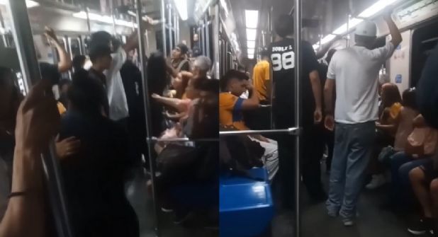 Una persona que compartió el vagón con los rijosos, sacó su teléfono celular y captó las escenas para luego publicarlas en la red social Facebook.