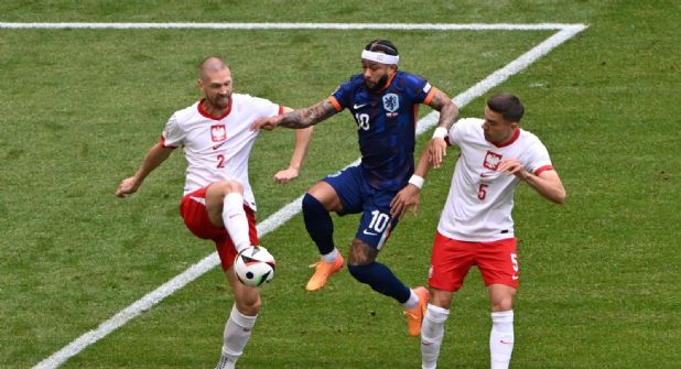 En esos momentos, Países Bajos dominaba el choque casi por completo. Joey Veerman, el sustituto de Frenkie de Jong, se erigió como un buen timón. Por delante, Memphis Depay dejó sus detalles y, sobre todo, Cody Gakpo se convirtió en un azote para Przemyslaw Frankowski por la banda izquierda. Continuamente, una y otra vez, el jugador del Liverpool se empeñó en dejar claro que los extremos están de moda en la Eurocopa tras las exhibiciones de Florian Wirtz, Jamal Musiala y el buen partido de Yamine Lamal.