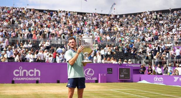 En su segunda final sobre hierba, el estadounidense atrapó el título en el torneo que sirve como antesala de Wimbledon tras necesitar tres puntos de partido y una hora y media de encuentro.