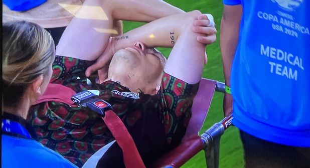 Tras su lesión, la asistencia medica del ‘Tri’ entró al terreno de juego para removerlo en camilla.