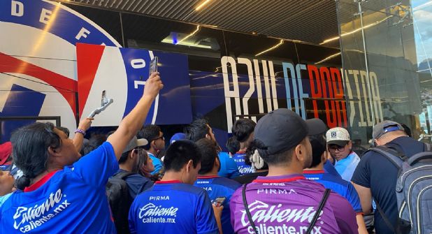 Monterrey.- Alrededor de 50 aficionados a Cruz Azul recibieron al equipo a su arribo al hotel de concentración en Nuevo León.