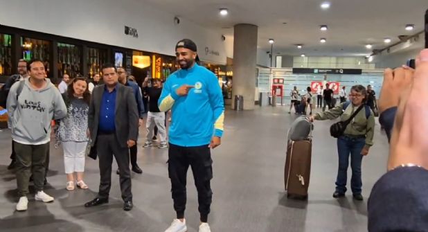 El delantero uruguayo aterrizó en la capital del país cerca de las 19:00 horas, donde incluso ya portó vestimenta referente al conjunto azulcrema.
