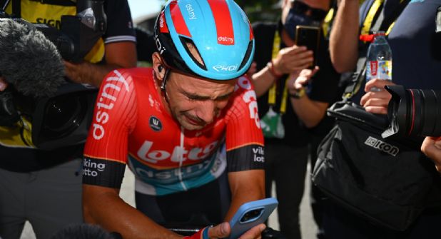 Francia.- Lloraba en meta el belga Victor Campenaerts (Lotto Dstny). No era para menos, pues el explusmarquista mundial de la hora estaba compartiendo con su mujer y su bebé su primer triunfo en el Tour de Francia a través de una videollamada sorpresa.