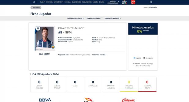 Monterrey.- El futbolista español, Óliver Torres, ya aparece registrado con el Club de Fútbol Monterrey y apunta a un próximo debut con el equipo.