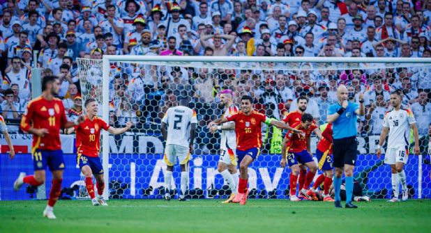 Alemania.- Un testarazo de Mikel Merino en el minuto 119, directo a los momentos de mayor gloria de la historia de la selección española, derribó el muro del anfitrión con épica, cuando todo estaba en su contra y asomaban los penaltis, tras ser igualada en el minuto 89 por el empuje alemán, después de cambiar su identidad por la resistencia antes de provocar el adiós al fútbol de Toni Kroos.