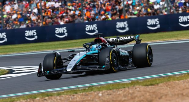 En la mejor de sus 22 vueltas, Russell cubrió los 5.891 metros de la legendaria pista inglesa -con el neumático de compuesto intermedio, el que usaron todos, en una sesión mojada- en un minuto, 37 segundos y 529 milésimas, solamente 35 menos que Hamilton -ocho veces triunfal en Silverstone, que dio seis vueltas más que él- y con 185 de ventaja sobre otro inglés, Lando Norris (McLaren): que había sido el más rápido en los entrenamientos del viernes.