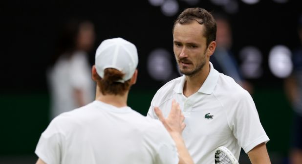 Inglaterra.- El ruso Daniil Medvedev doblegó, camino a sus segundas semifinales de Wimbledon, a un renqueante Jannik Sinner, que necesitó que le comprobaran los niveles de oxígeno en pista y decepcionó en su primer Grand Slam como número uno del mundo (6-7 (7), 6-4, 7-6 (4), 2-6 y 6-3).