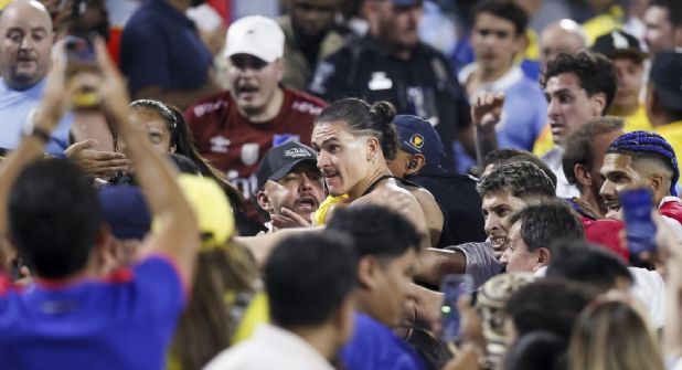 Después del encuentro, varios jugadores de la Celeste -entre ellos Núñez, Araújo y Giménez- saltaron a la grada para pelear con hinchas colombianos.