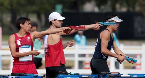 El atleta mexicano después participó en la natación, cronometrando un tiempo de 2:04.82 minutos en los 200 metros estilo libre, que le dieron un toral de 301 puntos; y en la prueba final de tiro-carrera consiguió meterse en el tercer lugar para obtener 695 unidades.