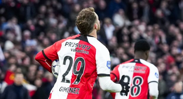 El delantero mexicano tan solo pudo maquillar el resultado en De Kuip con su diana a los 81 minutos, después de que el danés Niklas Vesterlund y el estadounidense Paxten Aaronson encaminaran en cinco minutos (60 y 65) el triunfo del cuadro visitante.