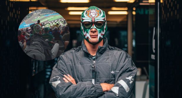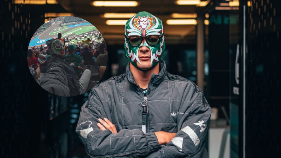 Antes de mezclarse entre los aficionados se colocó una máscara color verde con vivos en rojo y blanco, colores de la bandera mexicana, y se puso una chaqueta encima de la camiseta de su escudería.