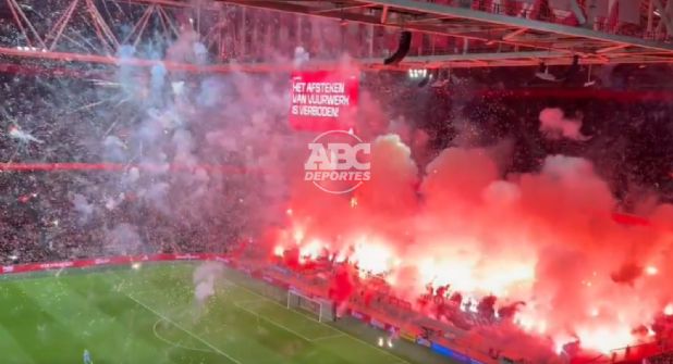 Una parte de los seguidores del Ajax habían decidido organizar un espectáculo pirotécnico en homenaje a un aficionado fallecido. La intensidad de los fuegos y la escasa visibilidad en una parte del estadio provocó la suspensión definitiva.