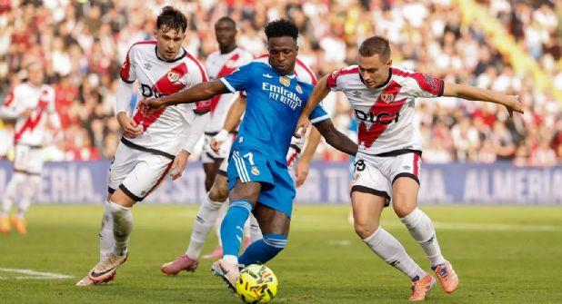 El Real Madrid, sin asumir riesgos, trato de fiar a una individualidad la resolución del partido y eso pasó, inicialmente, por dos acciones de Jude Bellingham y Kylian Mbappé que llevaron nerviosismo a la grada de Vallecas. La primera por un zurdazo que despejó Batalla y la segunda por un disparo al palo largo que se fue rozando el poste.