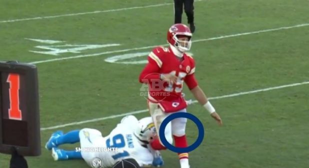 La acción en que se lastimó sucedió a menos de dos minutos del final del juego, cuando Mahomes buscaba llevar a su equipo a una remontada.