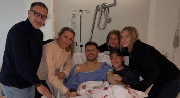 “Todo salió muy bien”, escribió el delantero mexicano, acompañando el mensaje con fotos en el hospital, junto a su familia y tomando mate tras la intervención.