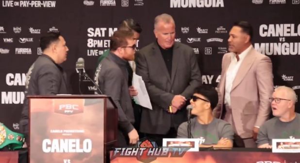 Tras la confrontación a palabras, 'Canelo' se levantó para encarar a De la Hoya, pero los elementos de seguridad y personas presentes intervinieron para evitar que la pelea llegar al tema físico. Posteriormente, la conferencia de prensa se reanudó con normalidad.