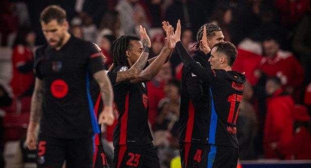 Esta vez el Barça dio muestras de su madurez y se mantuvo a flote. Flick dio entrada a Araujo por Dani Olmo, que dejó Da Luz algo contrariado por la decisión del técnico alemán, y los visitantes se encomendaron a la profundidad de Lamine Yamal y, sobre todo, de Raphinha para asustar al conjunto luso, cuyos jugadores pedían calma a los aficionados después de que el árbitro detuviera el partido por el lanzamiento de bengalas.