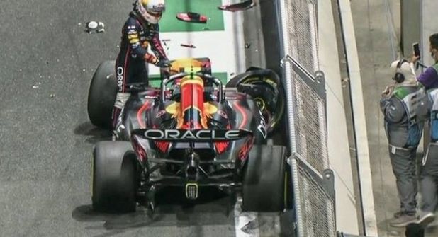 El compañero de Max Verstappen giró de más en una de las curvas, lo que provocó un ligero impacto de uno de sus neumáticos contra el muro y terminó estrellándose metros adelante por perder el control del monoplaza.