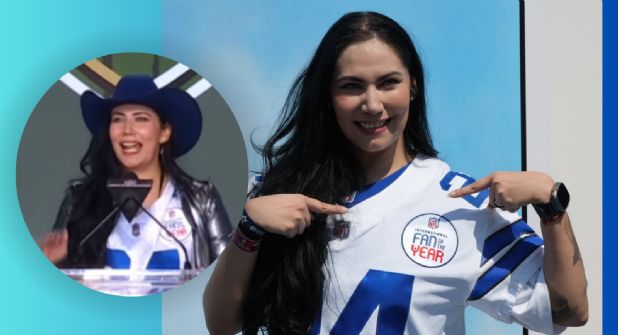 Sandoval fue reconocida como la Fan Internacional del Año por los Cowboys, que le asignaron el honor de presentar la selección de quinta ronda, que aprovecharon para tomar al corredor de Texas, Jaydon Blue.