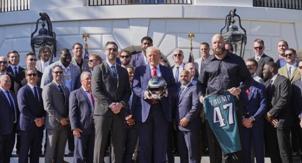En la recepción en la Casa Blanca, los Eagles obsequiaron a Trump con un casco del equipo y una camiseta con el '47' a la espalda, por su número como presidente en la historia de Estados Unidos.