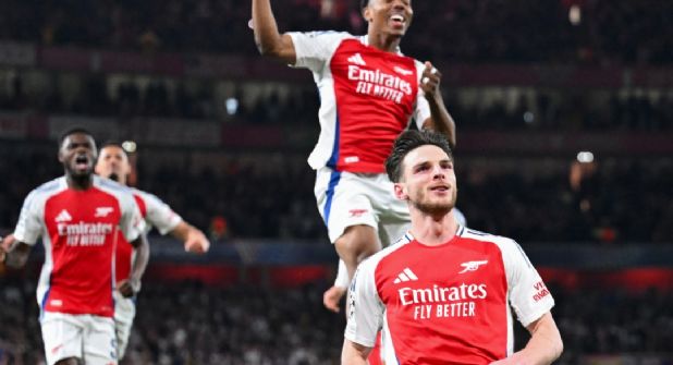 Era el primer gol de falta del Arsenal en su historia en las eliminatorias de Liga de Campeones. Vaya momento. Y vaya momento para que llegara el segundo. Doce minutos después y otra vez con Rice como protagonista, el Arsenal le asestó el segundo golpe.
