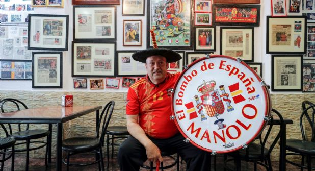 España.- Manuel Cáceres Artesero, apodado Manolo "El del bombo", fallecido a los 76 años, ha sido durante medio siglo el hincha más popular de la selección española de fútbol, a la que ha animado sin descanso por todo el mundo con su inseparable cachirulo y txapela y su gigantesco instrumento musical.