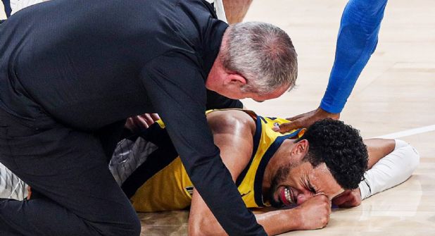 La imagen fue escalofriante. Sus compañeros, tras el inmediato tiempo muerto con 4.55 en el primer cuarto, rodearon a Haliburton mientras el Paycom Center se quedaba por un instante en silencio. Después todo el estadio reaccionó con una ovación, mientras el jugador, destrozado, se retiraba al vestuario sin poder apoyar la pierna y con una toalla ocultando su rostro cubierto en lágrimas.