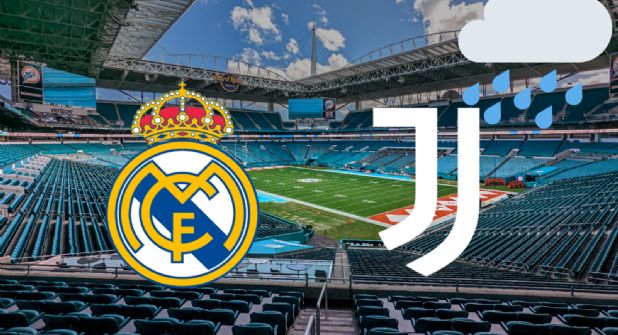 Miami.- El esperado partido entre Real Madrid y Juventus, correspondiente a los octavos de final, está en riesgo de cancelarse debido a las fuertes lluvias que azotan al Hard Rock Stadium en Miami.