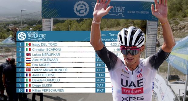 Tortosa, España.- El mexicano Isaac del Toro (UAE Emirates), ganador este lunes de la Clásica Terres de l'Ebre, reconoció que había "arriesgado" con su ataque en solitario a 34 kilómetros del final, pero señaló que está "feliz" por el resultado.