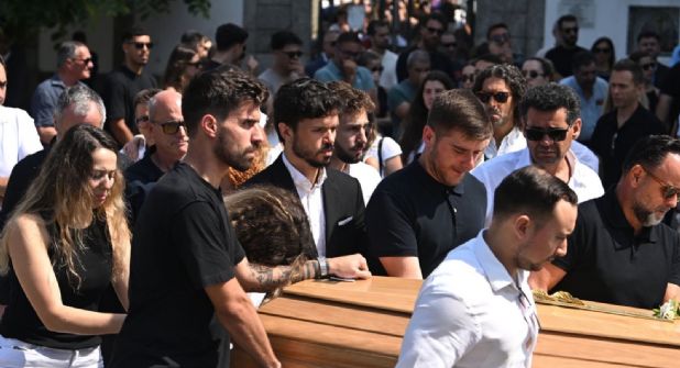 Tras la entrada de los invitados, los dos féretros fueron sacados de la Capilla de la Resurrección, justo detrás de la iglesia, para ser llevados al interior del templo, escoltados por jugadores, amigos y los familiares rotos de dolor.