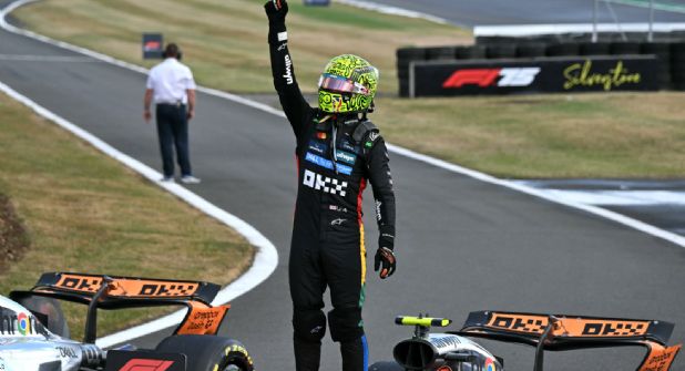 Reino Unido.- El inglés Lando Norris (McLaren) se impuso en el Gran Premio de Gran Bretaña a su compañero de equipo, el australiano Oscar Piastri, en una carrera loca, marcada por la lluvia y condicionada por la sanción al oceánico cuando iba primero.