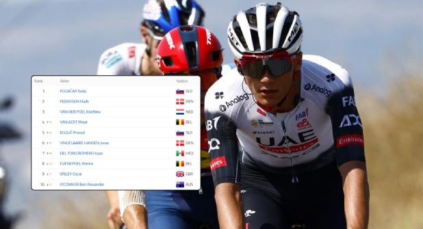 Su consistencia en la temporada, pese a no ser líder único del UAE, lo ha colocado por encima de otros talentos de su escuadra como Joao Almeida (#13) y Juan Ayuso (#29).
