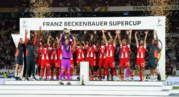 Alemania.- El Bayern Munich se impuso por 1-2 al Stuttgart en el partido por la Supercopa Franz Beckenbauer, como se llama la Supercopa alemana a partir de esta temporada, con goles de Harry Kane y Luis Díaz, que le dieron así al club bávaro el primer título de la temporada.