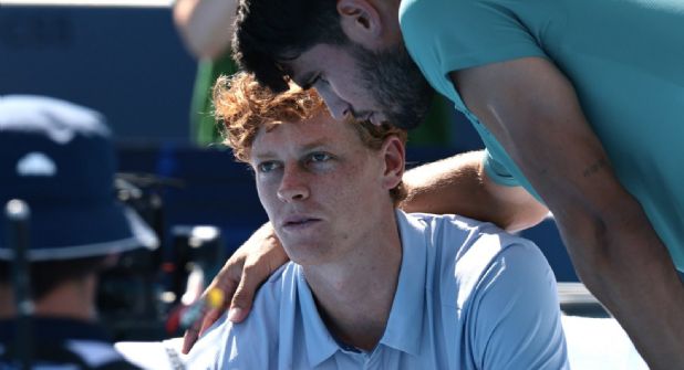 Sinner, número 1 del mundo en el ranking individual masculino, se retiró este lunes de la Final de Cincinnati que disputaba con el español Carlos Alcaraz tras 23 minutos de partido y con el marcador 5-0.