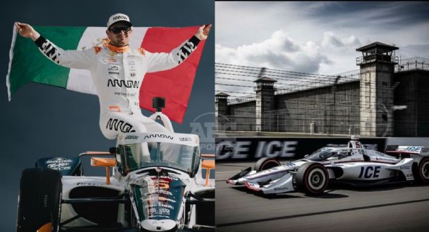 Estados Unidos.- Una imagen generada con inteligencia artificial y publicada por el Departamento de Seguridad Nacional de Estados Unidos (DHS) encendió la polémica en redes sociales. En ella se aprecia un auto tipo IndyCar con el número 5 —característico del mexicano Pato O’Ward— y logotipos del Servicio de Inmigración y Control de Aduanas (ICE), con una prisión como telón de fondo.