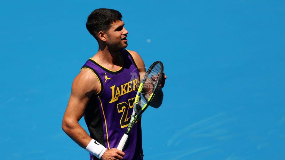 Australia.- El tenista español Carlos Alcaraz, número uno del mundo, realizó este lunes su primera sesión de entrenamiento en Melbourne para preparar el Abierto de Australia, programado del 18 de enero al 2 de febrero. El murciano llamó la atención al portar la camiseta púrpura de Los Ángeles Lakers con el dorsal 23 de LeBron James, figura de la NBA.