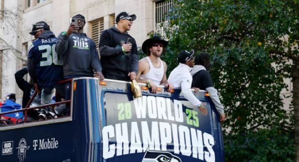 "Esta era la visión que teníamos para los Seahawks. Veo a todo el 'The 12s' en este estadio, veo lo poderosos que nos hacen; se me pone la piel de gallina. Los amamos, son los mejores. Y nosotros somos el mejor equipo del mundo. Somos los campeones", arengó Mike Macdonald, entrenador del equipo, con el trofeo Lombardi en lo alto.