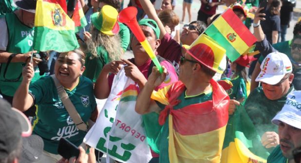 La afición boliviana tomó protagonismo desde el exterior del inmueble. Familias completas, niños sobre hombros, banderas ondeando y disfraces llenos de color marcaron el ambiente. No era solo un partido: era una ilusión compartida tras más de tres décadas sin disputar una Copa del Mundo.