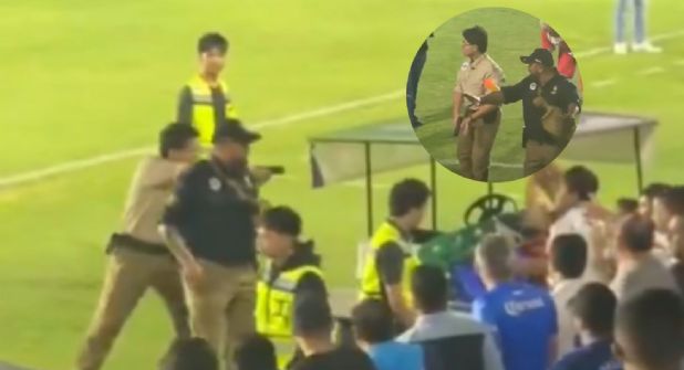 La afición logró ingresar a la cancha y golpeó a uno de los elementos de seguridad con patadas y sillas. Pese a la gravedad del incidente y el uso de un arma, no se reportaron disparos ni heridos graves.