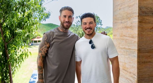 Santiago, Nuevo León.- El gobernador de Nuevo León, Samuel García, acompañado de su esposa Mariana Rodríguez y su hija Mariel, visitó El Barrial y convivió brevemente con el futbolista español de Rayados, Sergio Ramos.