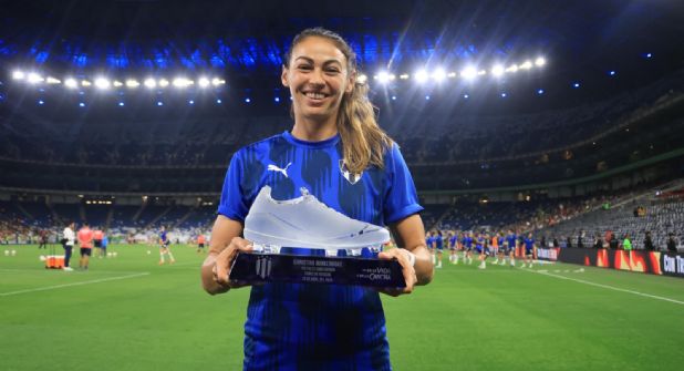 Es la única jugadora del club en conseguir un triplete en una semifinal de Liga MX Femenil, logrado en el Clausura 2024.