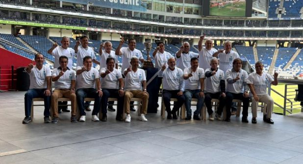 La tribuna del Estadio Monterrey fue sede de una fotografía histórica, en la que los protagonistas del primer gran logro albiazul posaron en la nueva casa de Rayados.