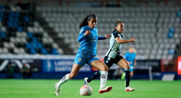 Las Tuzas se acercaron con un disparo de Abril Fregoso que desvió la portera albiazul Paola Manrique.
