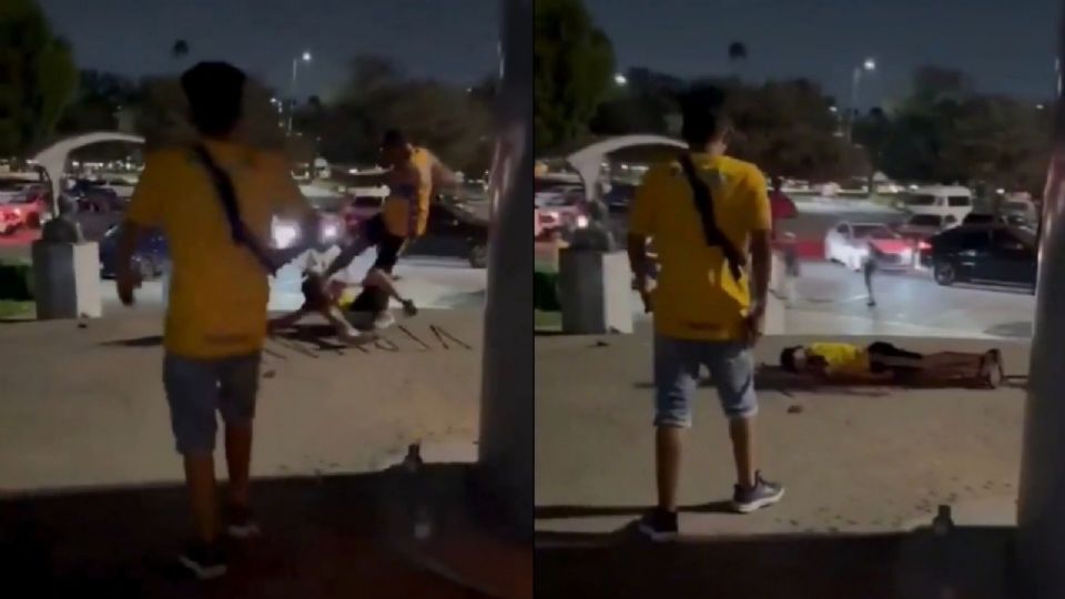 Uno de ellos cayó frente a la flama universitaria y fue golpeado por un presunto aficionado con jersey del equipo felino y posteriormente le dio una patada en la nuca que dejó inconsciente al americanista.