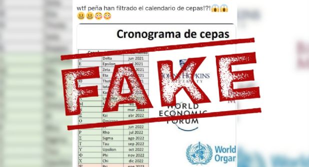 Consultada por EFE, la Organización Panamericana de la Salud (OPS), capítulo americano de la Organización Mundial de la Salud, aseguró en un correo electrónico que “el documento sobre un supuesto calendario de nuevas variantes es falso y no fue emitido por la OMS”.